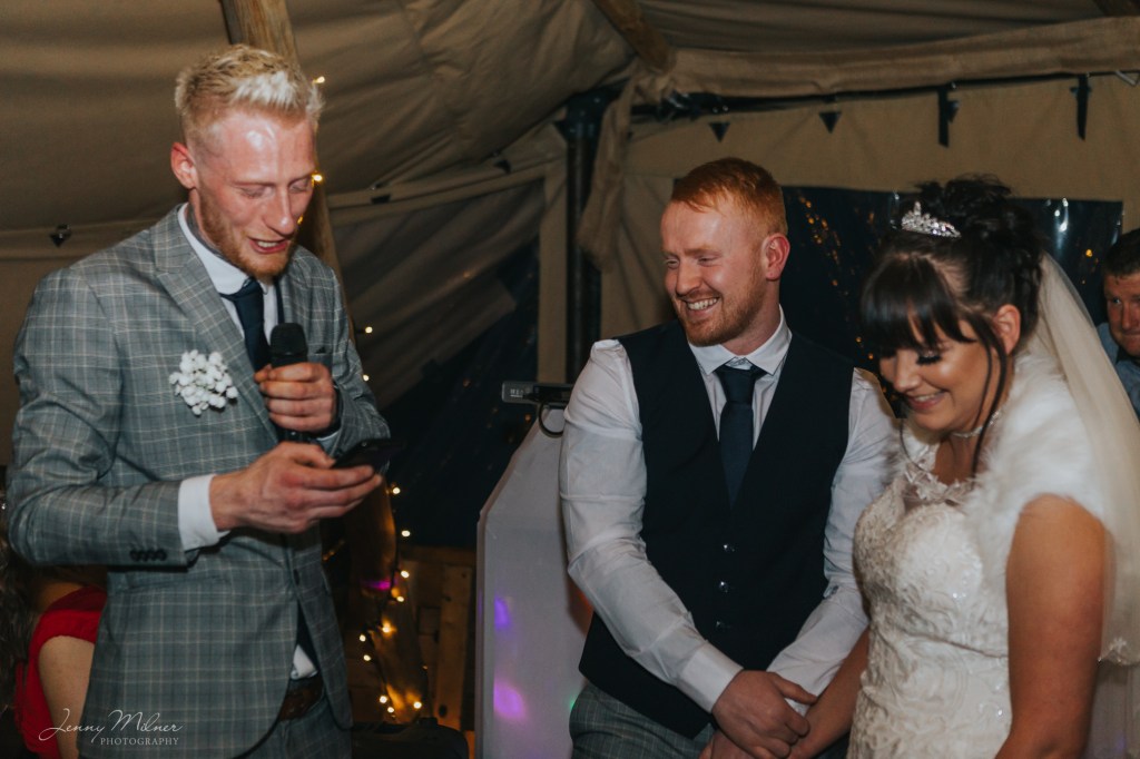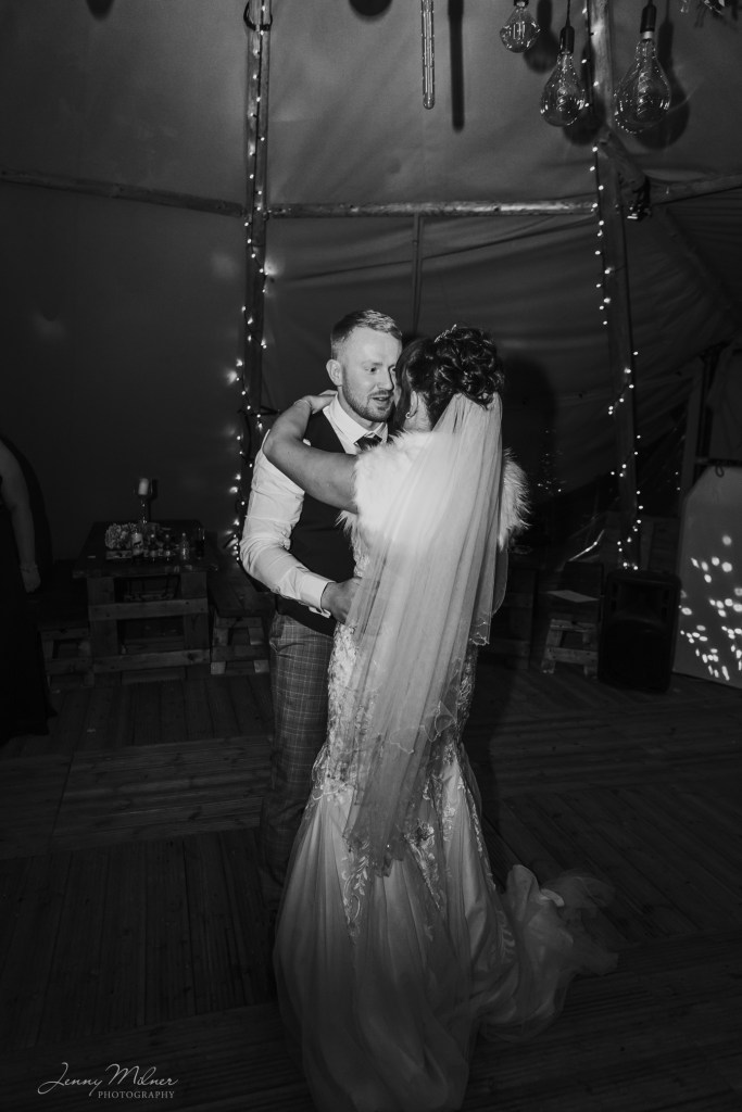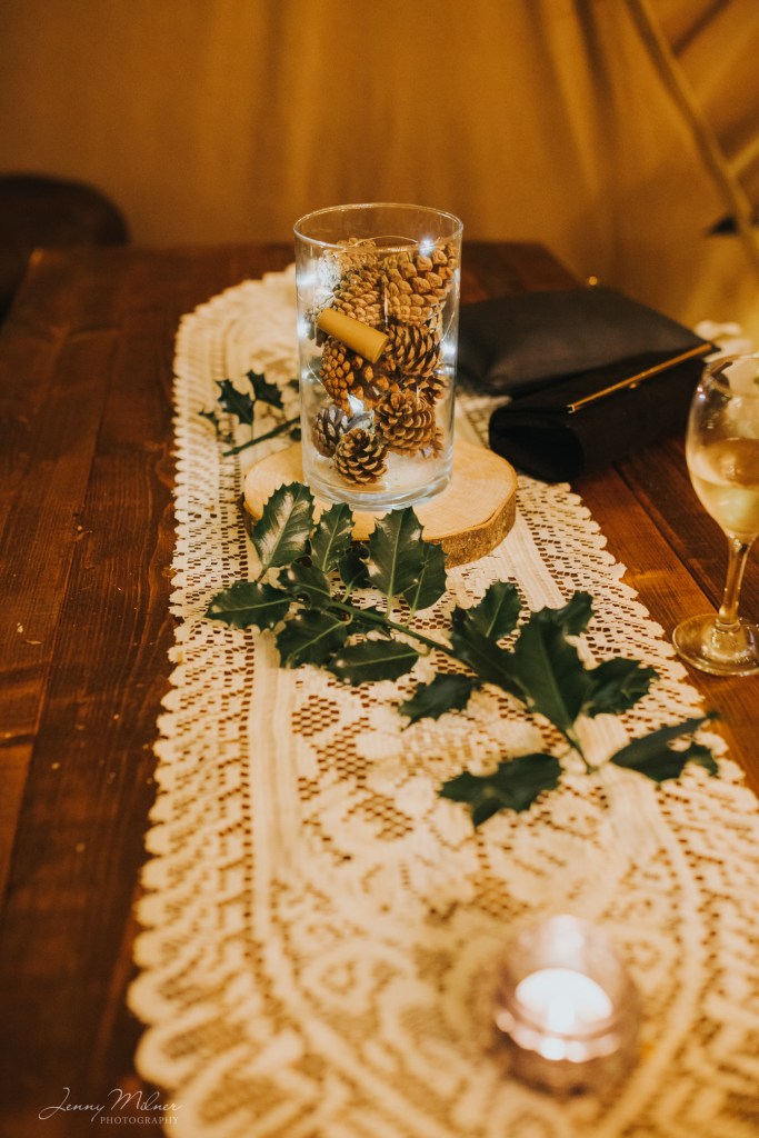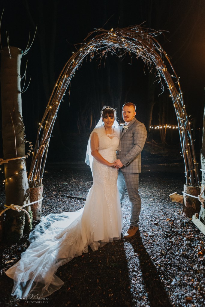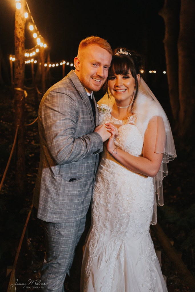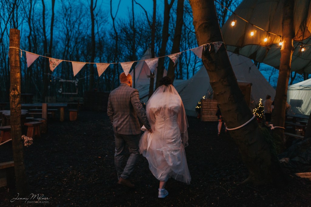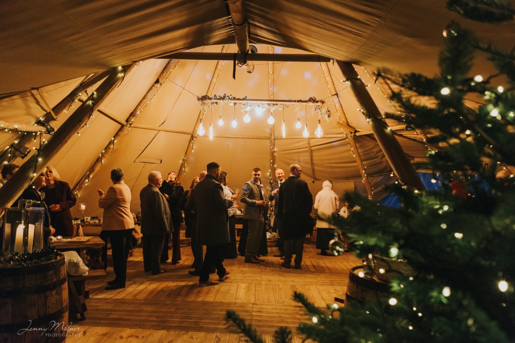 Then onto the reception at a stunning new venue, Cockley Woodland Weddings. Nestled in the woods in Grange Moor between Huddersfield and Wakefield, this venue is really magical! Complete with a huge tipi, outdoor seating, firepits and fairy lights, and the Christmas trees made it even more special for a winter wedding. The couple even booked a visit from Santa on his sleigh which was so exciting for all the children!
